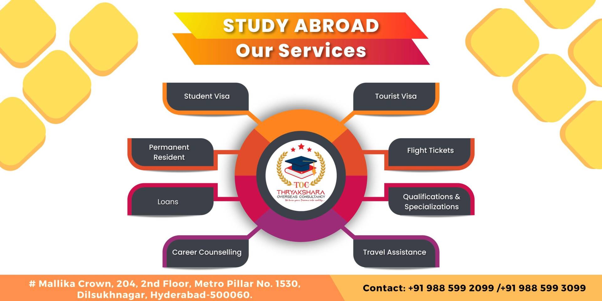 Posted on Bhavana YadavTrustindex verifies that the original source of the review is Google. I received a great support n guidance and the best decision I took for my abroad journey is reaching out thryakshara overseas consultancy thank you for ur support β€οΈPosted on B LakshmiTrustindex verifies that the original source of the review is Google. I have planned to move abroad for my Masters and One of my friend suggested Thryakshara Overseas consultancy, it is one of the best consultancy they have helped me very well in terms of choosing the country and finding a university which is perfect for my higher studies. Vivek Bro has So Supportive and The hospitality in the office was heart warming.Posted on Umamaheshwari KandatiTrustindex verifies that the original source of the review is Google. One the best consultancy and highly recommend. There service is top notch. Special thanks to Vivek bro and pramidha akka through out my process and that's the reason here I'm in my dream University. With out any second option you can approach thyrakshara overseas consultancy for your abroad studies.Posted on YELLENDULA SAHITHITrustindex verifies that the original source of the review is Google. My experience with Thryakshara was the best Vivek bro and Pramida sis are very good at giving guidance and helping us throughout the process. Do reach out to them who are planning to do master's this will be the best choice.Posted on Shivasri ChokkallaTrustindex verifies that the original source of the review is Google. Undoubtedly Thrayakshara overseas consultancy is a game changing , I really experienced a good service from counselor and staff ,starting from application process to end of my mock test with visa approvals,I just believed in them and everything went very smoothly, I would like to take a moment to specially thanks Vivek sir and prameeda mam for their tremendous work and response. I'm really happy to be a part of the Thrayakshara consultancy with a positive output, I wish all the best for endeavours.Posted on Likitha CherlakolaTrustindex verifies that the original source of the review is Google. Thryakshara Overseas provided exceptional assistance when I applied for my US study visa. Vivek bro was incredibly helpful and made sure I had all the necessary documents and information before submitting my application.He is so responsive to my queries and offered valuable guidance throughout the process. Thankyou Vivek bro and team.Posted on Chandana pagudalaTrustindex verifies that the original source of the review is Google. Helped me a lot in getting admit from my dream University and the process with them was so smooth and tense freePosted on chikati likhitha chowdaryTrustindex verifies that the original source of the review is Google. This organisation helped me a lot with the college applications and very much responsive throughout my process.Thank you so much Thryakshara overseas consultancyPosted on ganesh gajjeTrustindex verifies that the original source of the review is Google. Thanks a lot Vivek Sir, Thryakshara have given me the bright future. I got my visa approved. The way they gave the mock session was so good and they give more suggestions that how to express your answers to the visa interviewer. For all the good things we always need to have a right choice and also good guidance so Thryakshara is the best choice for the future masters aspirants so do consult the right consultancy I chosen Thryakshara Overseas Consultancy (TOC). More over Vivek Sir gave me so much guidance for my University Application & interview preparation the key to crack the interview is having a right counselor and the motivating counselor is must. Thanks Vivek Sir and teamππππππ